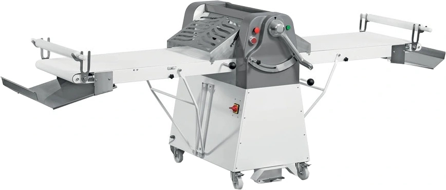 Тестораскаточная машина WLBake DSF 600-1000 предназначена для раскатки в равномерный пласт слоёного, крутого пельменного, песочного, дрожжевого, пресного теста. Оснащена подвижными крыльями-конвейерами, педалью управления и 2 скалками.